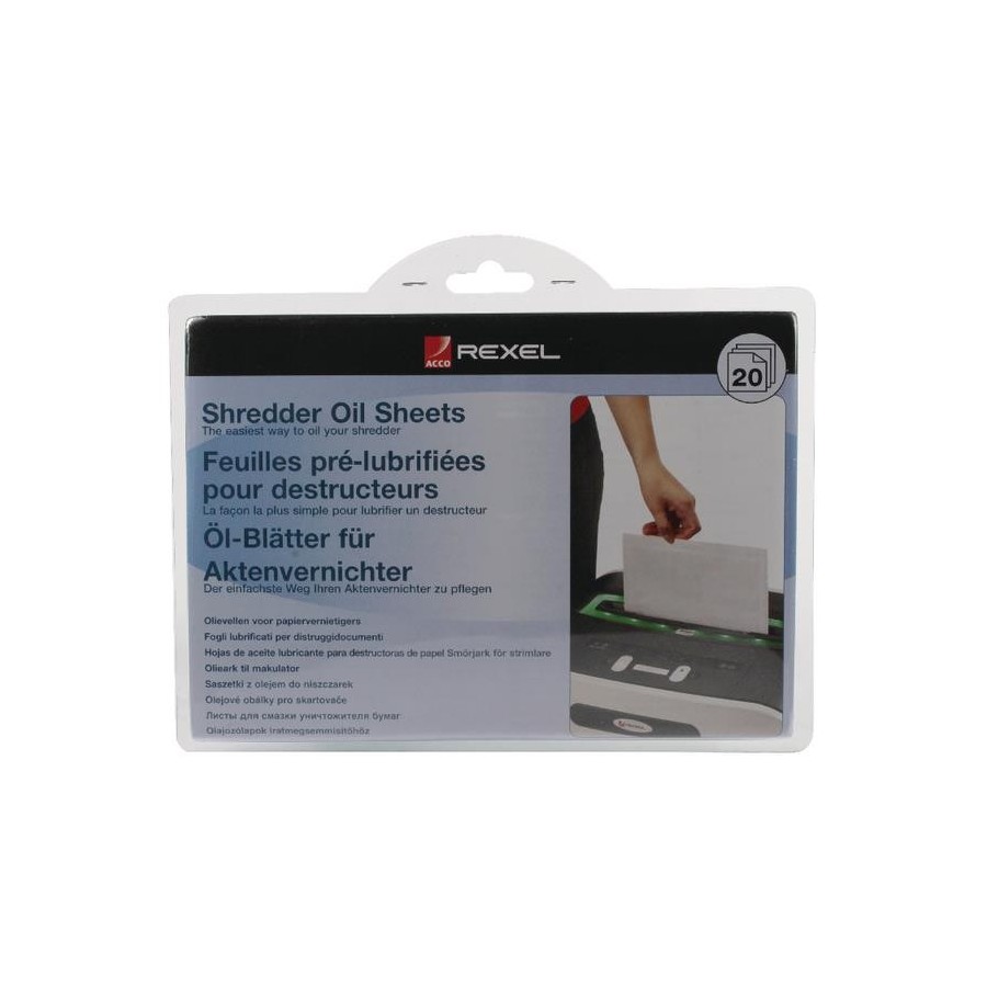 • Hojas lubricantes Rexel para destructora paquete de 20 hojas.