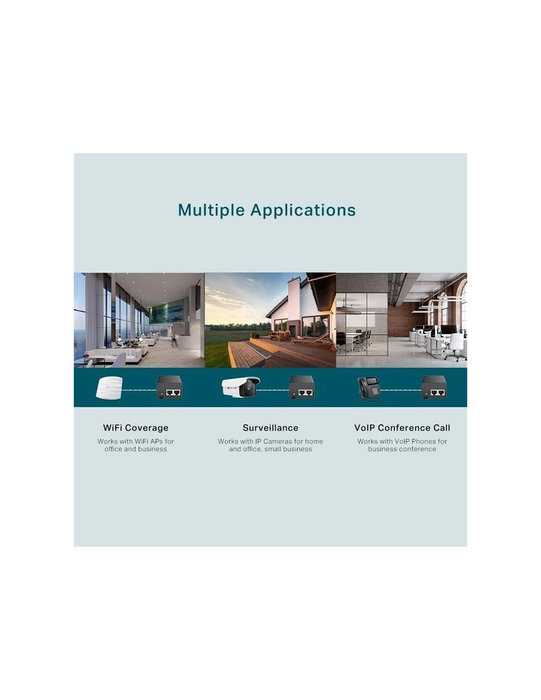 | Otras características | - Medios de Red: 10BASE-T: cable UTP categoría 3, 4, 5 (máximo 100 m) EIA / TIA-568 100O STP (máximo 100 m) 100BASE-TX: cable UTP categoría 5, 5e (máximo 100 m) EIA / TIA-568 100O STP (máximo 100 m) 1000BASE-T: cable UTP categoría 5, 5e, 6 (máximo 100 m) - Consumo de Potencia: Entrada: 100-240 V, 50/60 Hz Salida: autodetermina los requisitos de energía necesarios (máx.30 W) - Funciones Básicas: El algoritmo de detección automática permite proporcionar energía con 802.3af / at PD Determina automáticamente los requisitos de energía necesarios Compatible con montaje en pared y escritorio Conecta y reproduce - Indicador de LED: ENCENDIDO: Suministrando energía normalmente APAGADO: Sin fuente de alimentación - Dimensiones: 4.9*2.3*1.4 in (125*59.4*36.8 mm) - Estándares y Protocolos: IEEE802.3i, IEEE802.3u, IEEE802.3ab, IEEE802.3af, IEEE802.3at - Certificación: FCC, CE, RoHS |