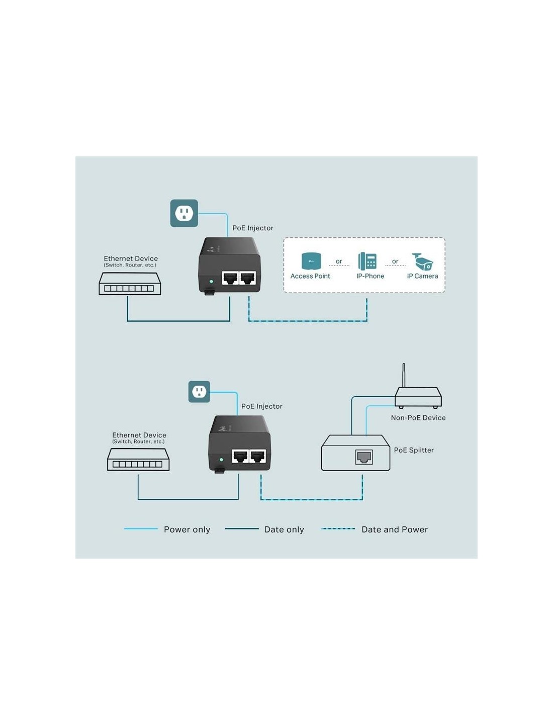 | Interfaz | - 1 x puerto de entrada de datos RJ45 de 10/100/1000 Mbps - 1 x puerto RJ45 de alimentación + salida de datos a 10/100/1000 Mb |