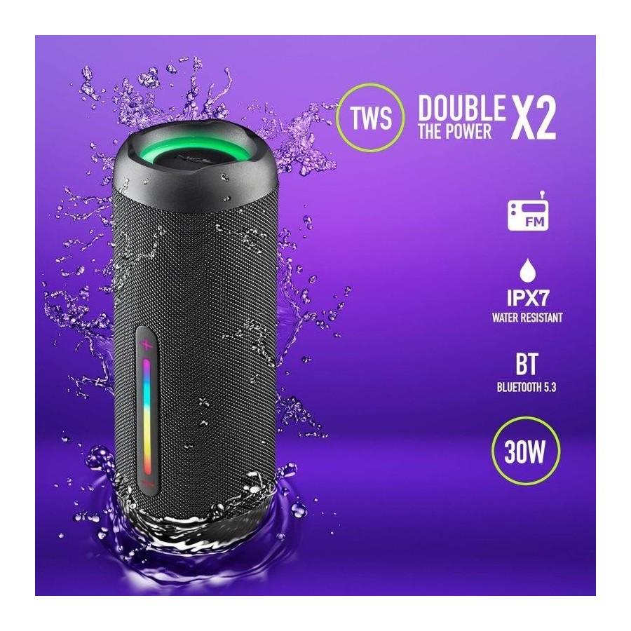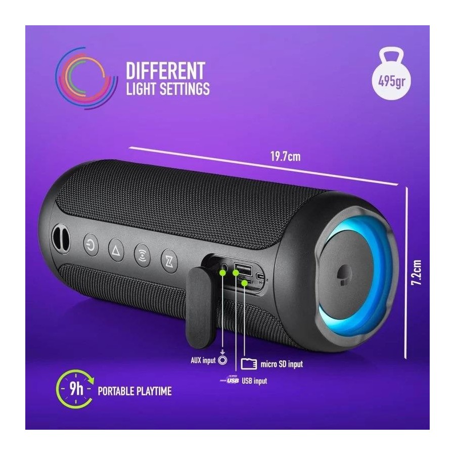 ALTAVOCES NGS ROLLER FURIA 2 RGB PORTATIL WATERPROOF IPX7/BT/USB/AUX BLACK