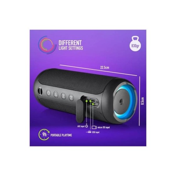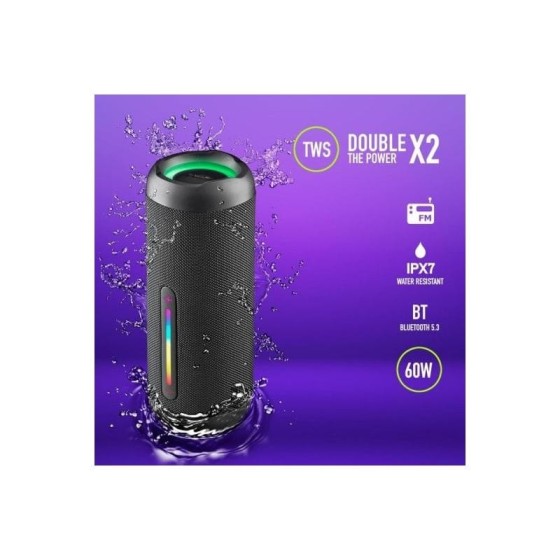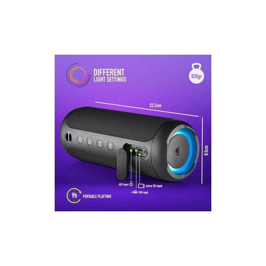 ALTAVOCES NGS ROLLER FURIA 3 RGB PORTATIL WATERPROOF 60W IPX7/BT/USB BLACK