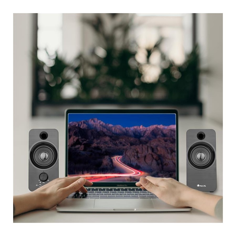 • Fácil acceso: funciones on/off y de volumen integradas en un solo botón en la parte delantera de los altavoces. Podrás controlar ambos altavoces 2.0 con un solo botón.