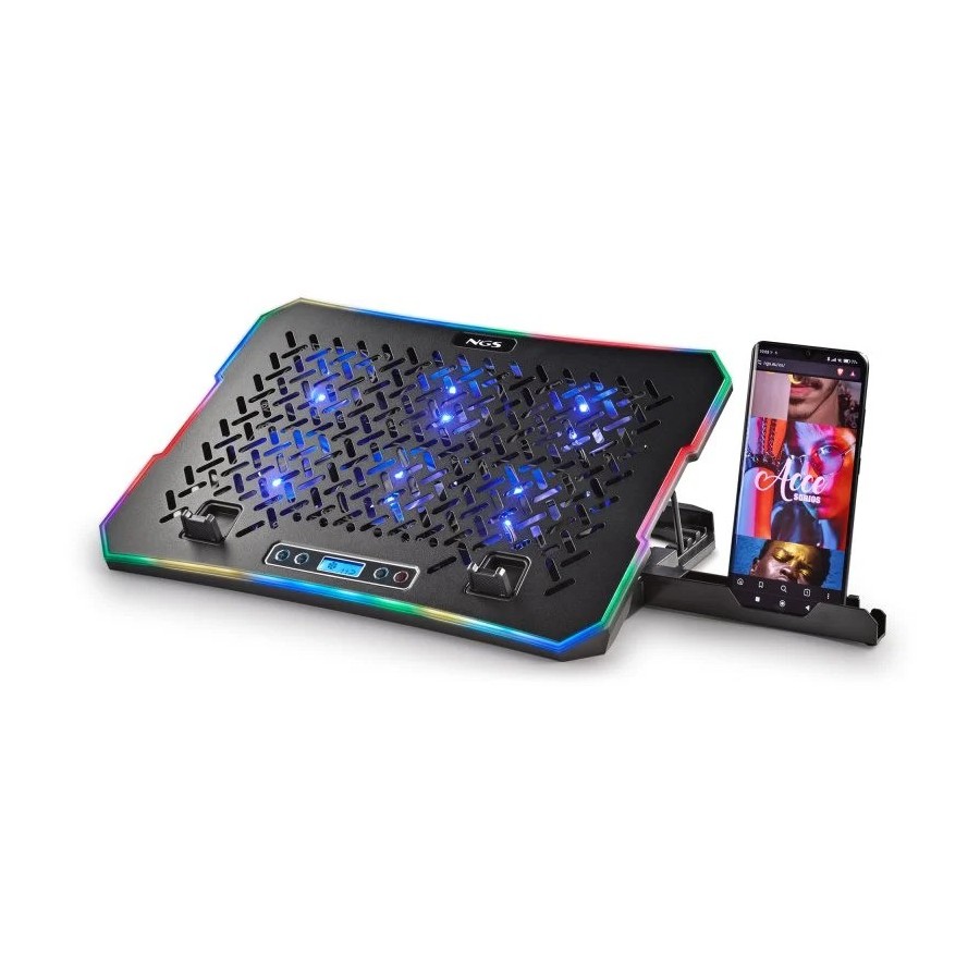 SOPORTE + VENTILADOR NOTEBOOK NGS HEROSTAND RGB BLACK + SOPORTE SMARTPHONE