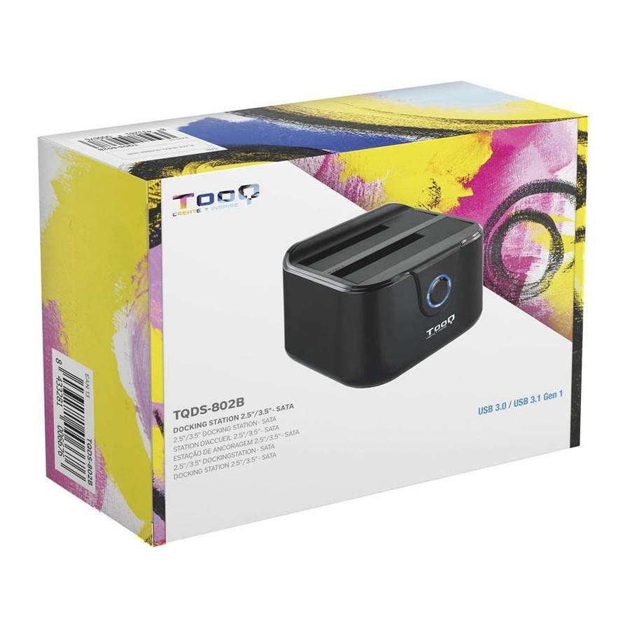 Docking Station TQDS-802 es un dispositivo versátil que funciona como dock para conectar hasta 2 discos duros SATA a un PC a través de USB 3.0. Es una solución ideal para clonar(duplicar) discos duros y hacer copia de seguridad.