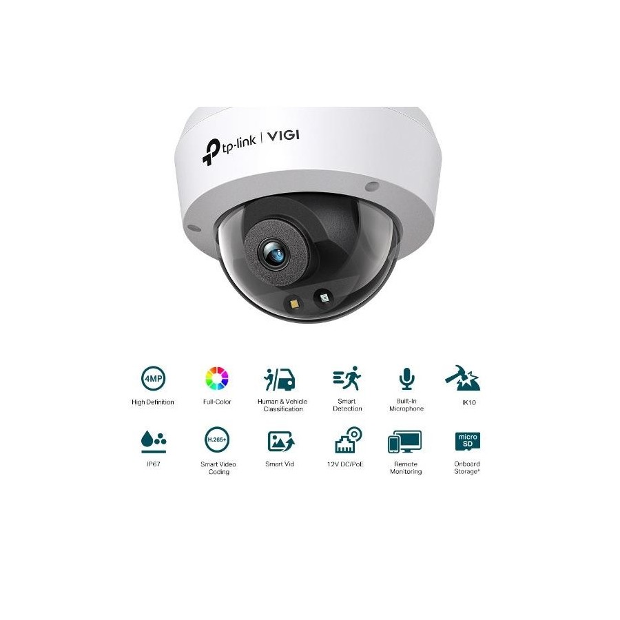 CAMARA IP TP-LINK VIGI DOME EXTERIOR/INTERIOR 4MP 4MM IR 30M IP67 POE/CC