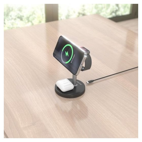 BASE CARGADOR AISENS SMARTPHONE/APPLE WATCH/AURICULARES WIRELESS QI2 15W USB-C BLACK