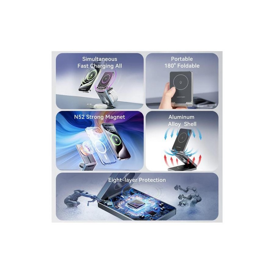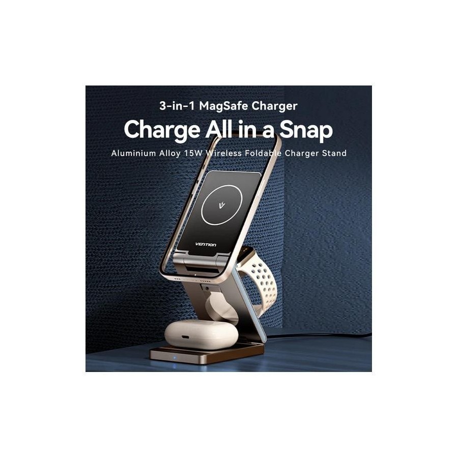 BASE CARGADOR VENTION SMARTPHONE/APPLE WATCH/AURICULARES WIRELESS BLACK