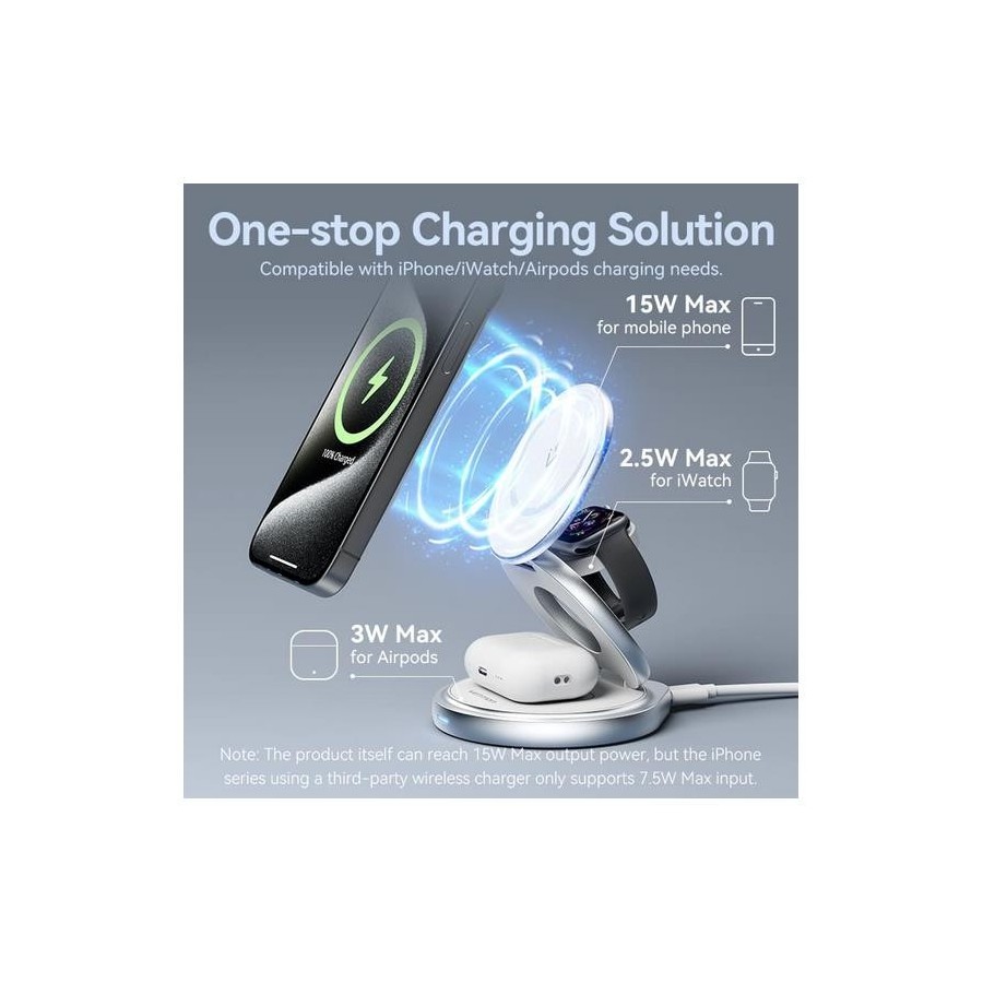 BASE CARGADOR VENTION SMARTPHONE/APPLE WATCH/AURICULARES WIRELESS SILVER