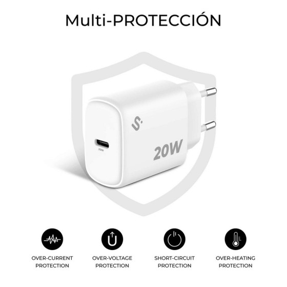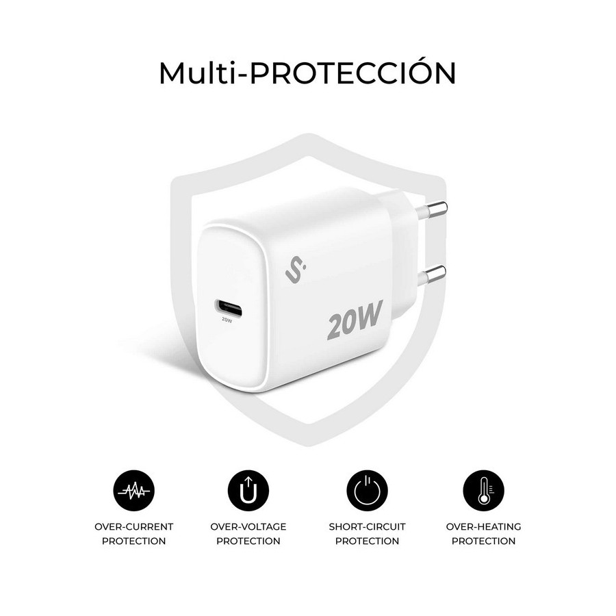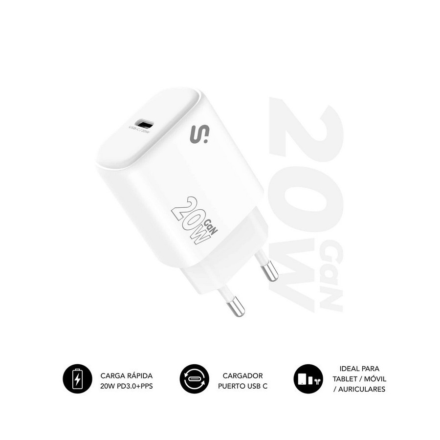CARGADOR DE PARED SUBBLIM GAN USB-C 20W WHITE