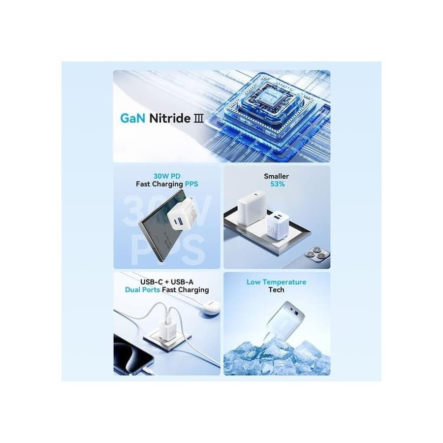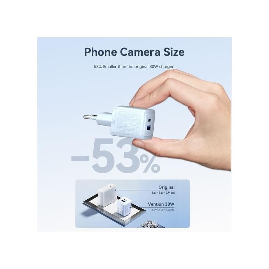 CARGADOR DE PARED VENTION GAN USB-C USB-A 30W ROSE