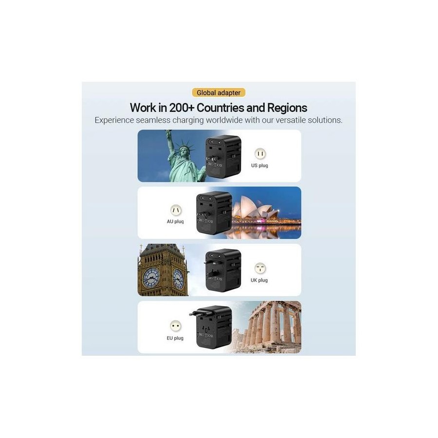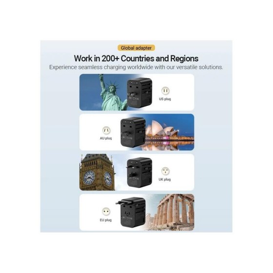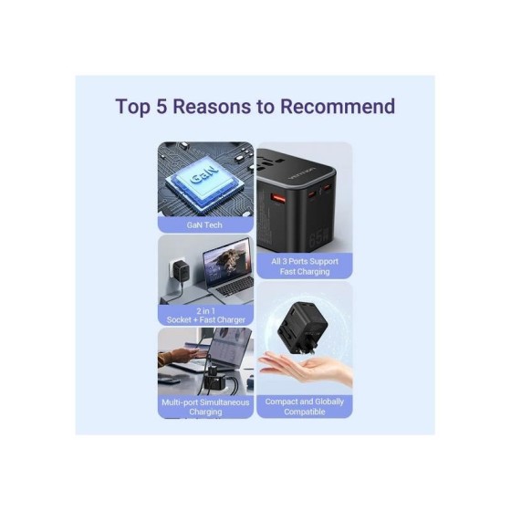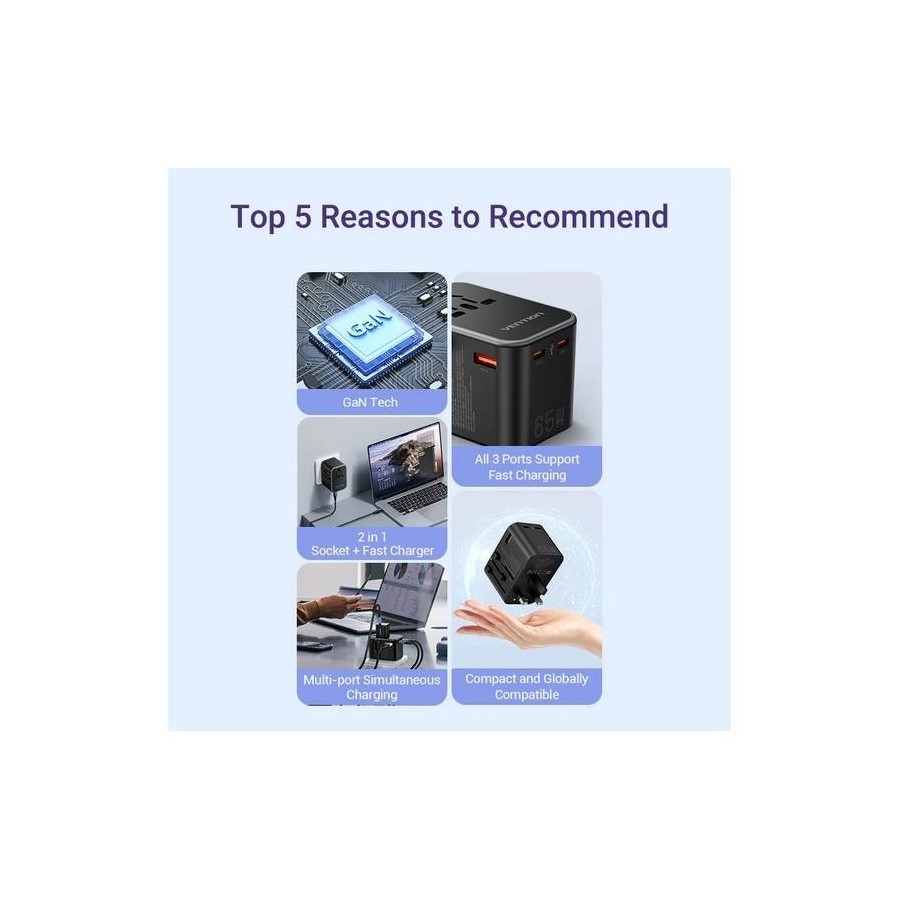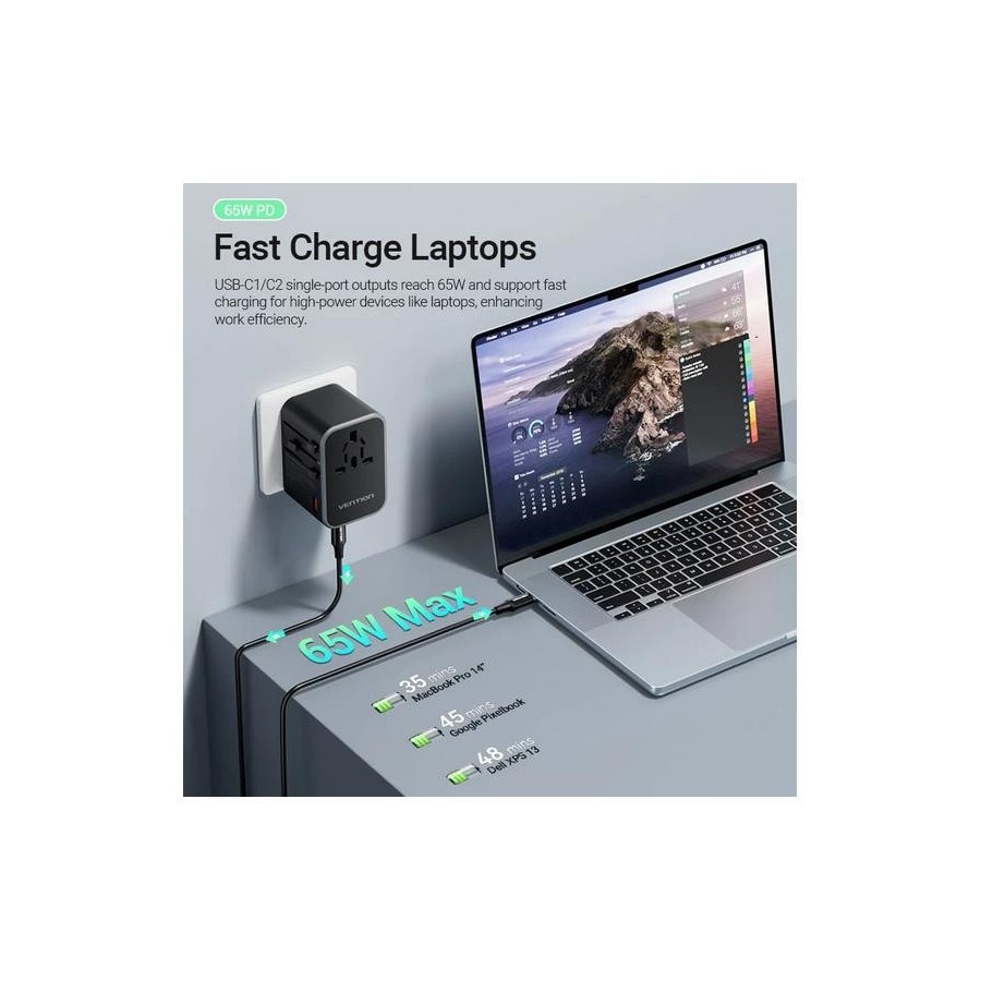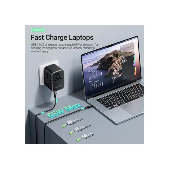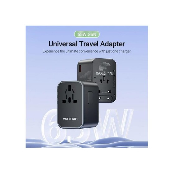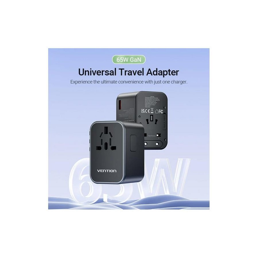 CARGADOR DE PARED VENTION UNIVERSAL GAN 2XUSB-C USB-A 65W