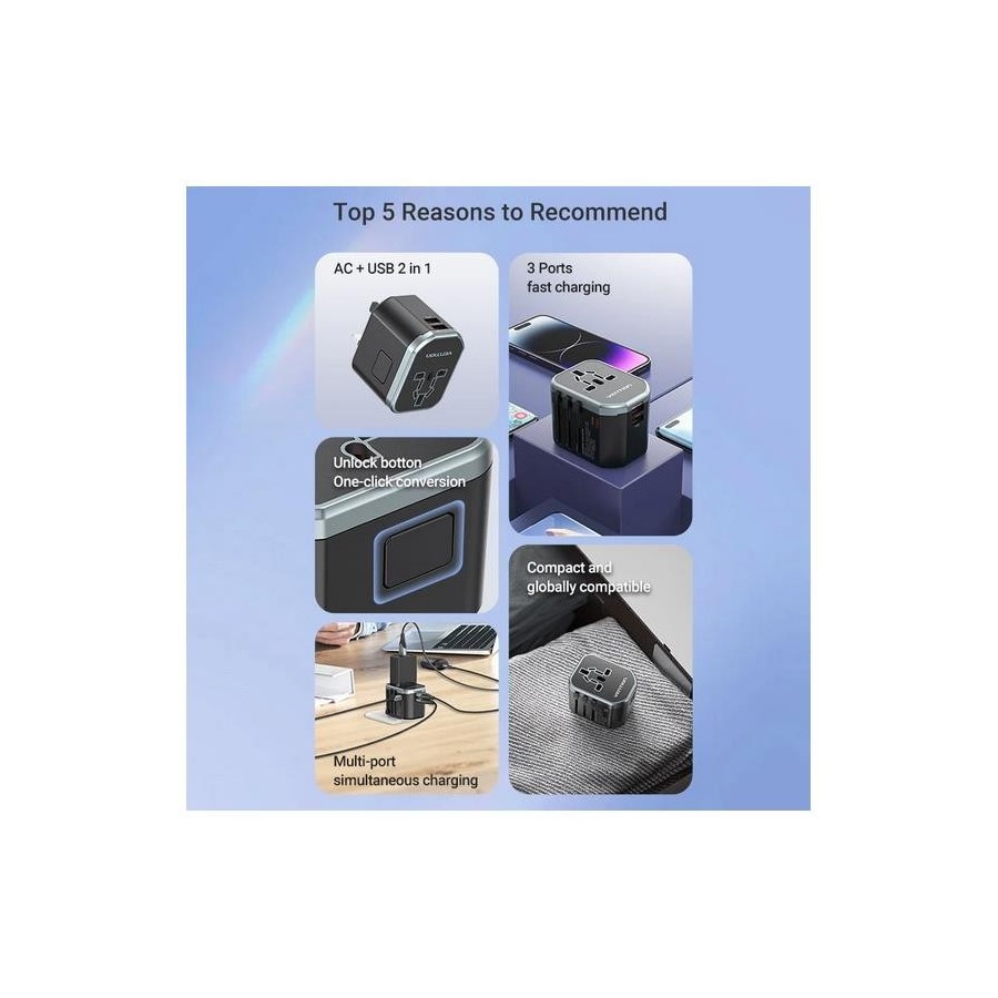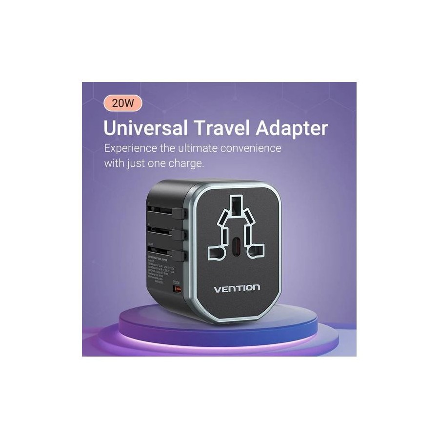 CARGADOR DE PARED VENTION UNIVERSAL USB-C 2XUSB-A 20W