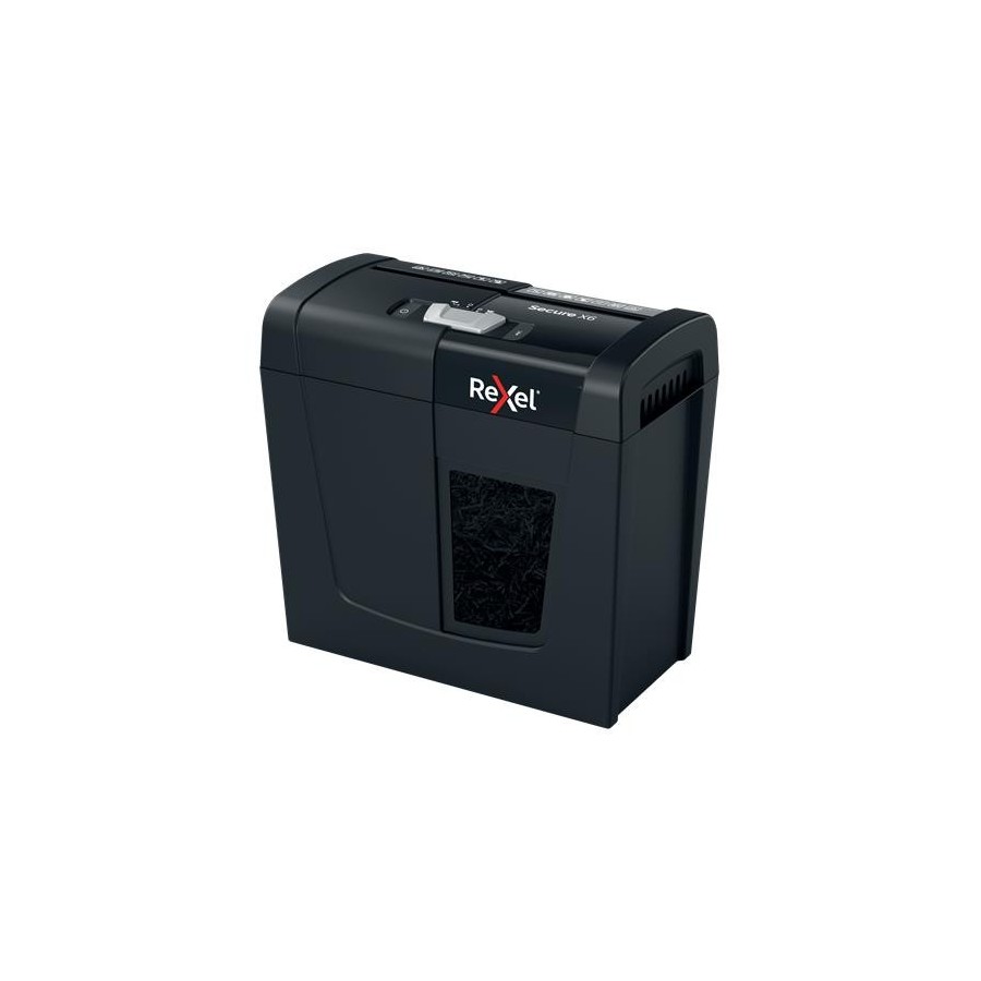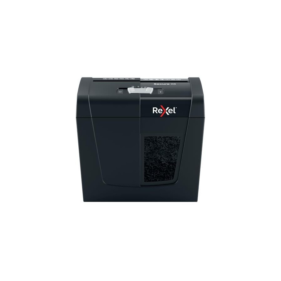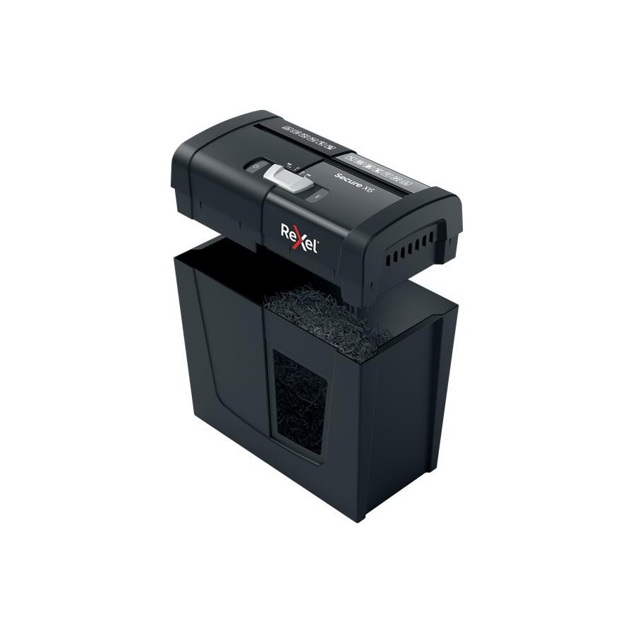 Destructora de documentos REXEL Secure X6, partículas 4 x 40 mm, negra Capacidad de corte: 6 hojas, volumen de recogida: 10 litros, ancho de trabajo: 220 mm, nivel de seguridad: P-4, tritura grapas, cabezal de corte desmontable, papelera con ventana papelera con ventana, enchufe Euro