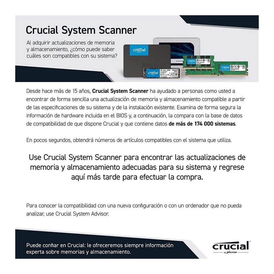 • Herramientas para una instalación sencilla ¡Nuestras instrucciones sencillas, software de clonación y videos instructivos hacen de la instalación un proceso sencillo! Millones de personas han actualizado con una unidad de estado sólido de Crucial.