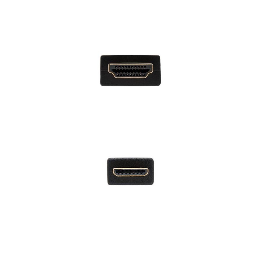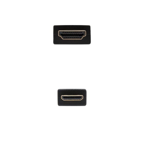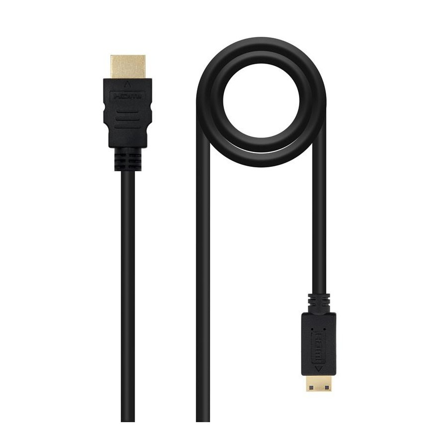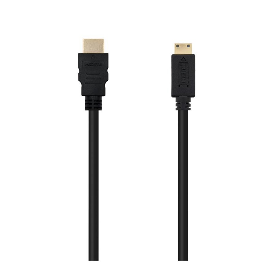 Nanocable CABLE HDMI A MINI HDMI V1.3, A/M-C/M, 1.8 M. Longitud de cable: 1,8 m, Conector 1: HDMI tipo A (Estándar), Género del conector 1: Macho, Conector 2: HDMI Type C (Mini), Género del conector 2: Macho, Contactos del conector chapado: Oro, Versión HDMI: 1.3b, Máxima resolución: 2560 x 1600 Pixeles, Color del producto: Negro - Cable HDMI V1.3b y full 1080P(categoría 2) de resolución tipo A macho en un extremo y tipo C macho(mini HDMI) en otro\n- Ancho de banda hasta 340MHz (10,2Gbps)\n- Conectores de alta calidad blindados en oro de 24K. M&&£acute;acute;ltiple apantallamiento formado por 128 hilos trenzados y lámina de aluminio para la máxima reducción de posibles interferencias. Fabricado con conductores de cobre (cobre OFC-Oxygen Free Copper- 99,99%) de alta calidad que garantiza la máxima calidad de transmisión.\n- Resolución en proyección digital WQXGA (2560 X 1600).\n- Tasas de refresco hasta 120Hz frame.\n- Soporta DOLBY True-HD y DTS-HD\n- 8 canales de descompresión de audio digital en tasa de 192KHz con 24bits.\n- Profundidad de color 24bits, 30bits, 25bits y 48bits\n- Soporta protección de contenido de alto ancho de banda digital