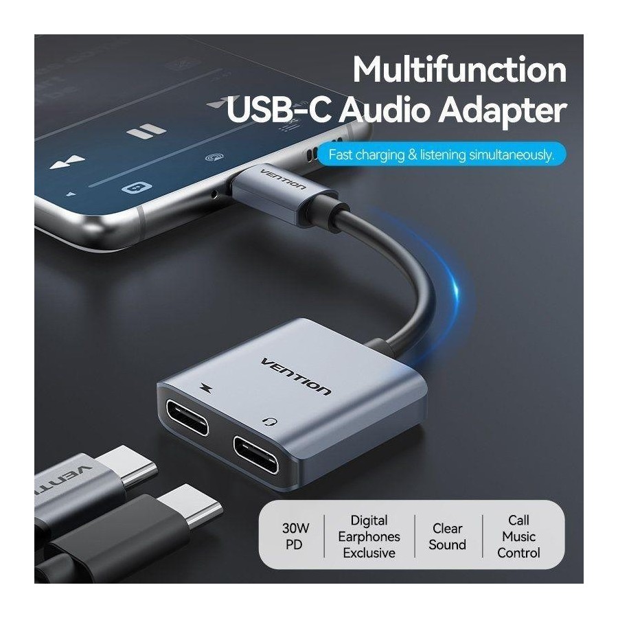 CABLE CONVERSOR VENTION USB-C/M - 2X USB-C/H AUDIO/CARGA GREY