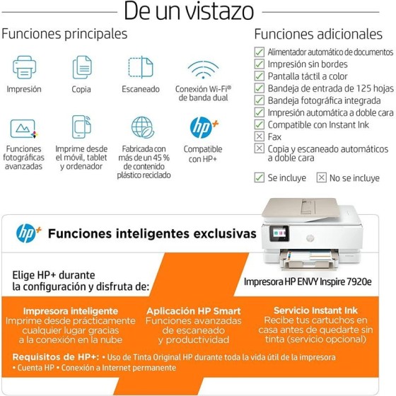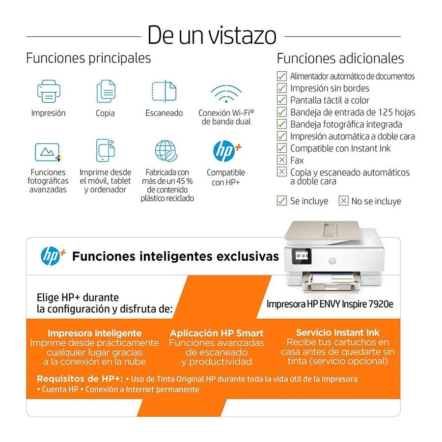 IMPRESORA HP DESKJET MULTIFUNCION ENVY 7920E COLOR WIFI WHITE