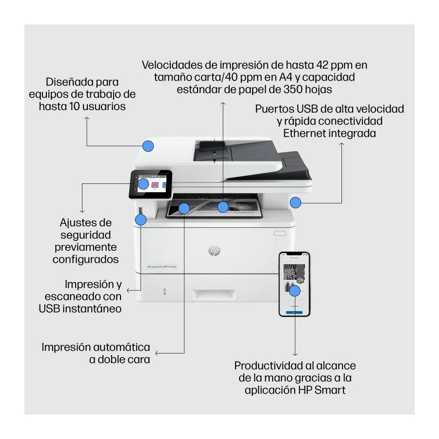IMPRESORA HP LASERJET PRO 4102DW MFP WIFI DUPLEX MONOCROMO