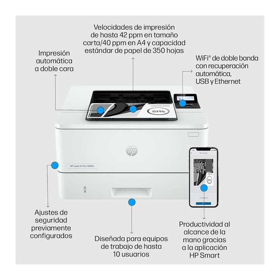 IMPRESORA HP LASERJET PRO LASER MONOCROMO 4002DN DUPLEX WHITE