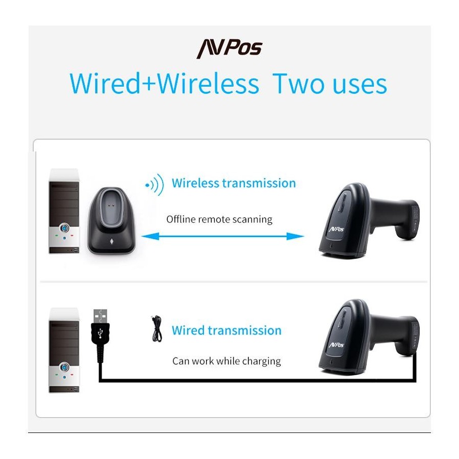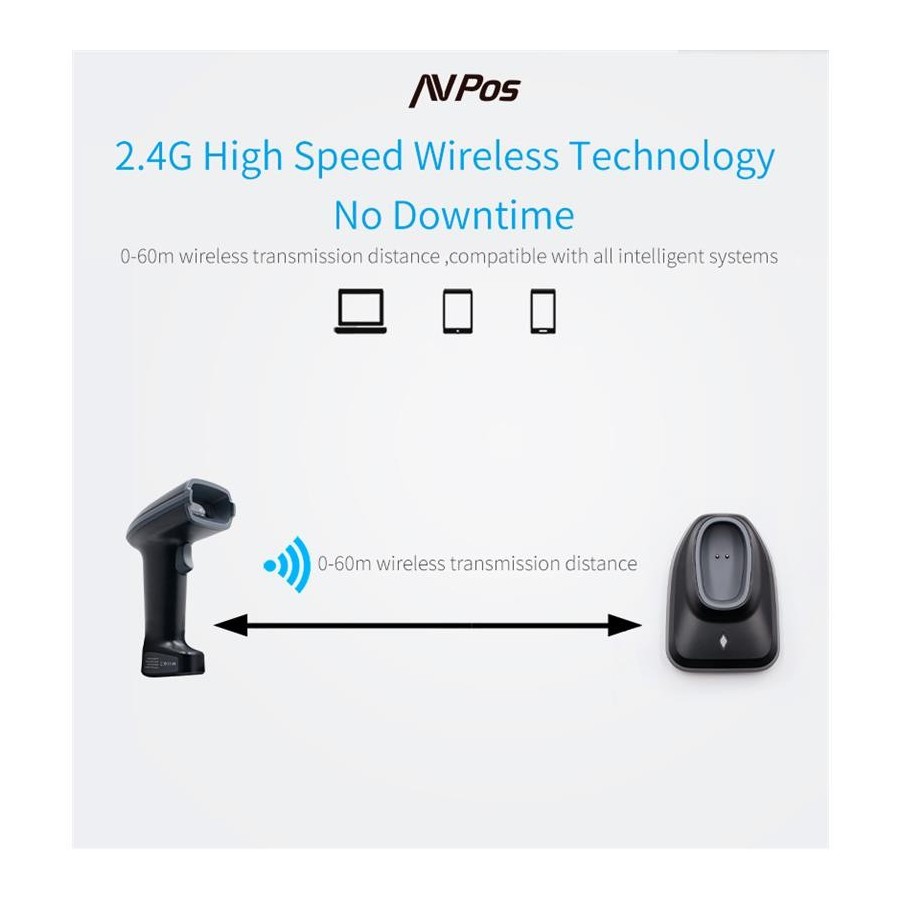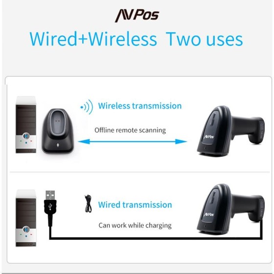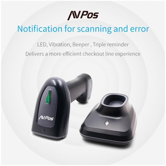 LECTOR AVPOS CODIGOS 1D + 2D +QR BT230 WIRELESS 2.4 + BLUETOOTH + USB