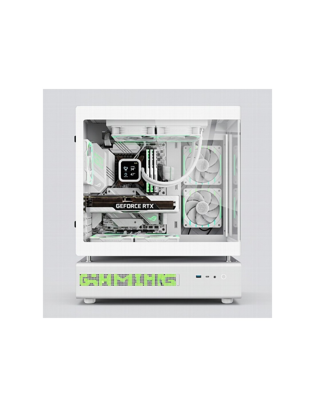 Diseño premium con panel lateral para presumir de hardware y una estética cuidada al detalle.