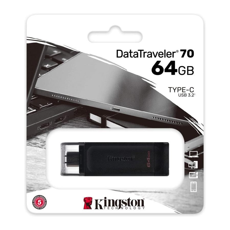 DataTraveler 70 de Kingston es una pequeña y ligera unidad Flash USB-C que alcanza velocidades de USB 3.2 Gen 1. Ha sido diseñada para dispositivos compatibles con USB-C, como notebooks, portátiles, tabletas y teléfonos inteligentes. Con capacidades de hasta 128 GB, DataTraveler70 le permitirá ampliar el almacenamiento para el uso cotidiano. Además, está respaldada por una garantía de 5 años y asistencia técnica gratuita.