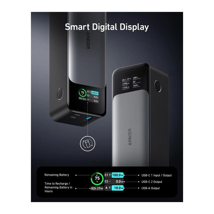 POWERBANK ANKER 737 GEN2 2XUSB-C + 1XUSB-A 140W FAST CHARGE 24000MAH BLACK