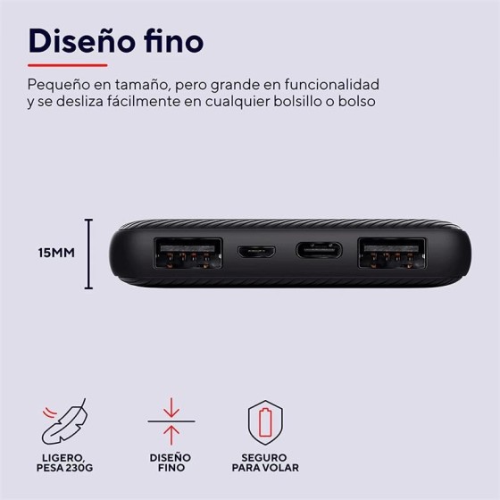 POWERBANK TRUST PRIMO SLIM 10000MAH 2A USB + USB-C + MICRO-USB ECO BLACK