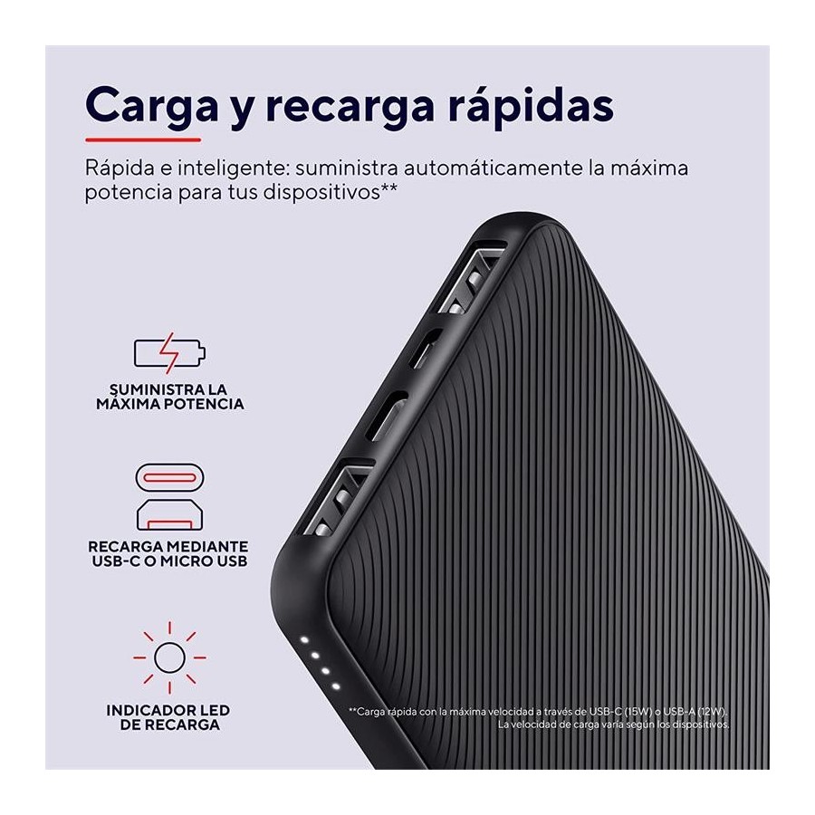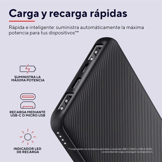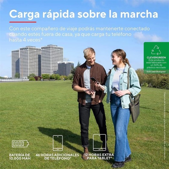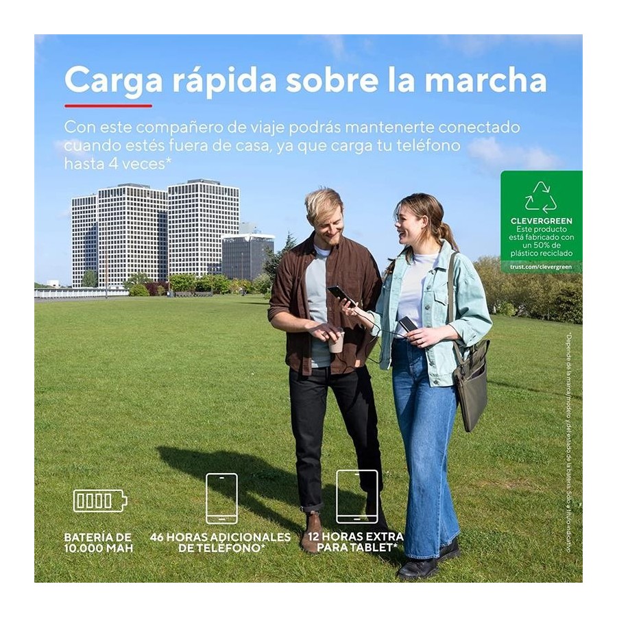 POWERBANK TRUST PRIMO SLIM 5000MAH 2A USB + USB-C + MICRO-USB ECO BLACK