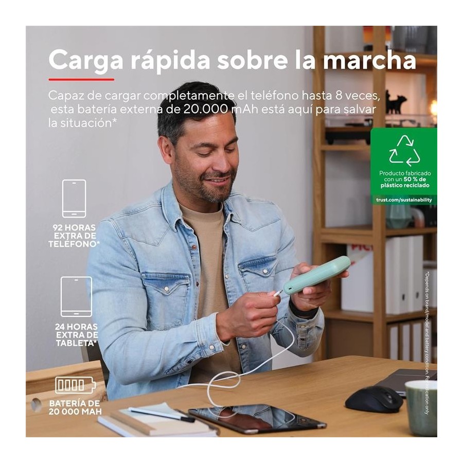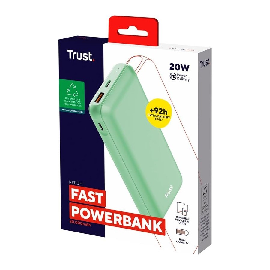 POWERBANK TRUST REDOH 20000MAH USB-A + X2 USB-C GREEN