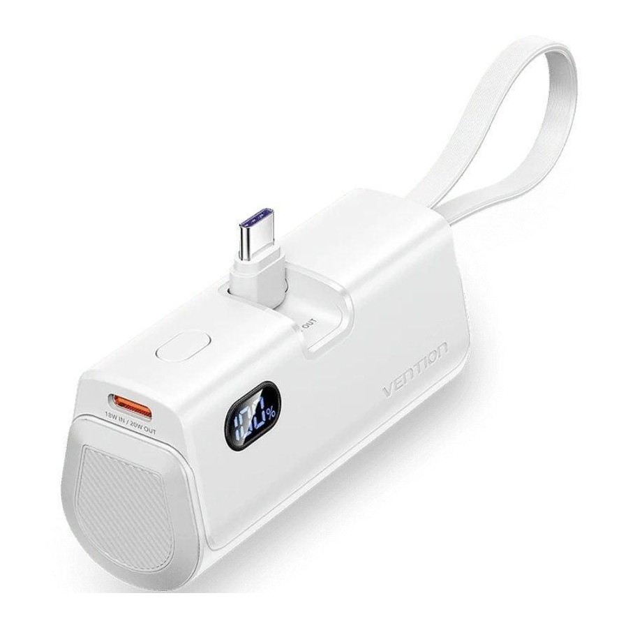 POWERBANK VENTION 4800MAH 2XUSB-C + LIGHTNING 22.5W USB-C PLEGABLE WHITE