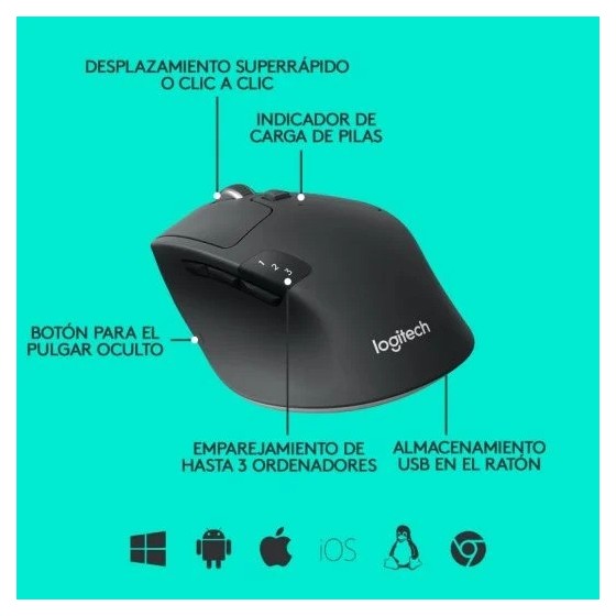 RATON LOGITECH TRIATHLON M720 WIRELESS BLUETOOTH 1000DPI BLACK