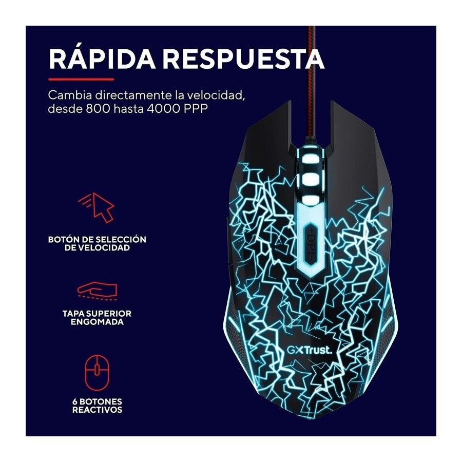 RATON TRUST GAMING GTX 105X IZZA USB 400DPI RGB BLACK