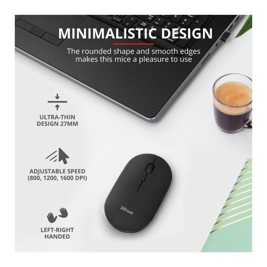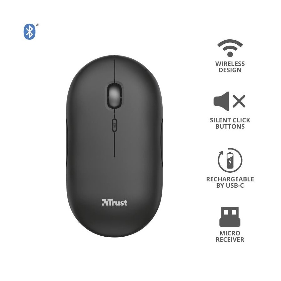 El ratón Puck de Trust está diseñado para ser la solución ideal ante cualquier exigencia del trabajo fuera de casa. Este ratón inalámbrico ultrafino es lo bastante pequeño para llevarlo encima sin por ello sacrificar la facilidad de uso. Está equipado con todas las funciones que necesita, como doble conectividad inalámbrica, botones silenciosos y batería recargable. Y es apto tanto para usuarios zurdos como diestros.