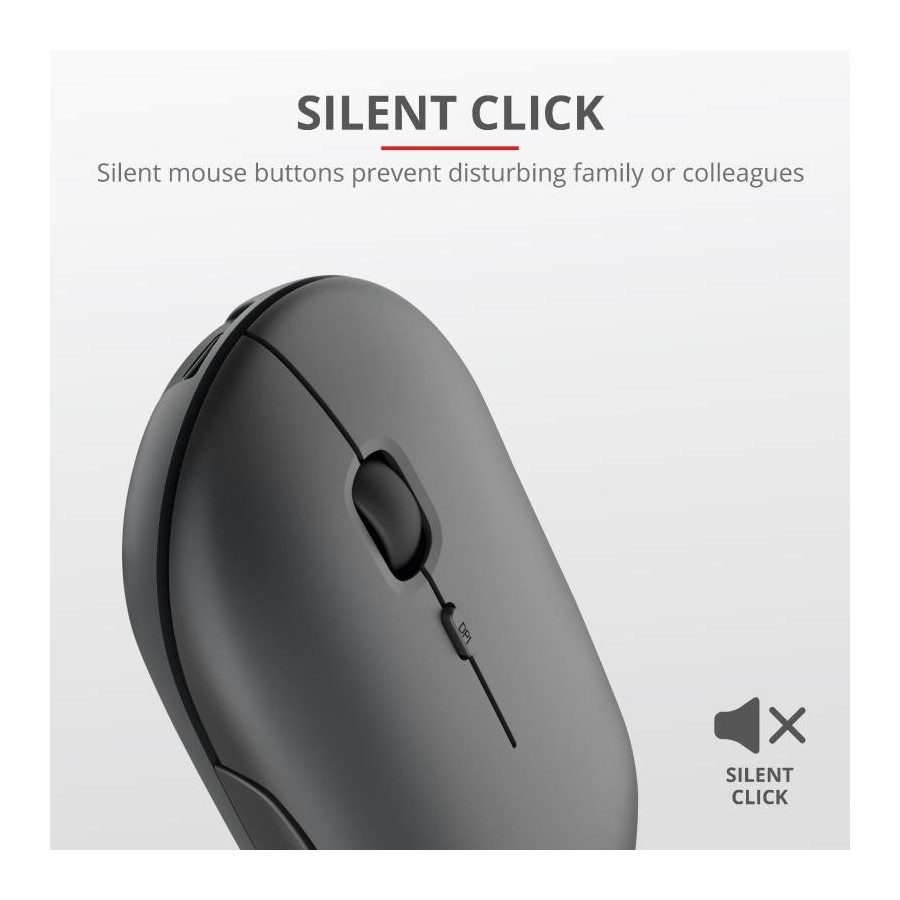 A nadie le gusta molestar a sus colegas cuando se tiene mucho trabajo. Por ello, el Puck de Trust está equipado con botones silenciosos que reducen los molestos sonidos de los clics en un 90 % en comparación con otros ratones. Y hablando de botones, el interruptor de ppp integrado permite alternar fácilmente entre diferentes velocidades. Si a esto le suma la práctica rueda de desplazamiento, ya tiene todo cuanto necesita para realizar su trabajo.