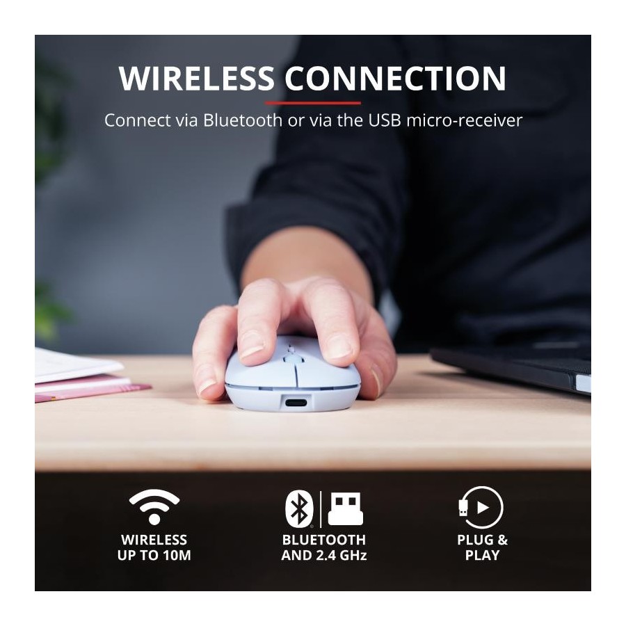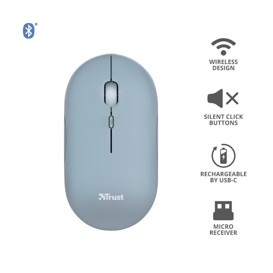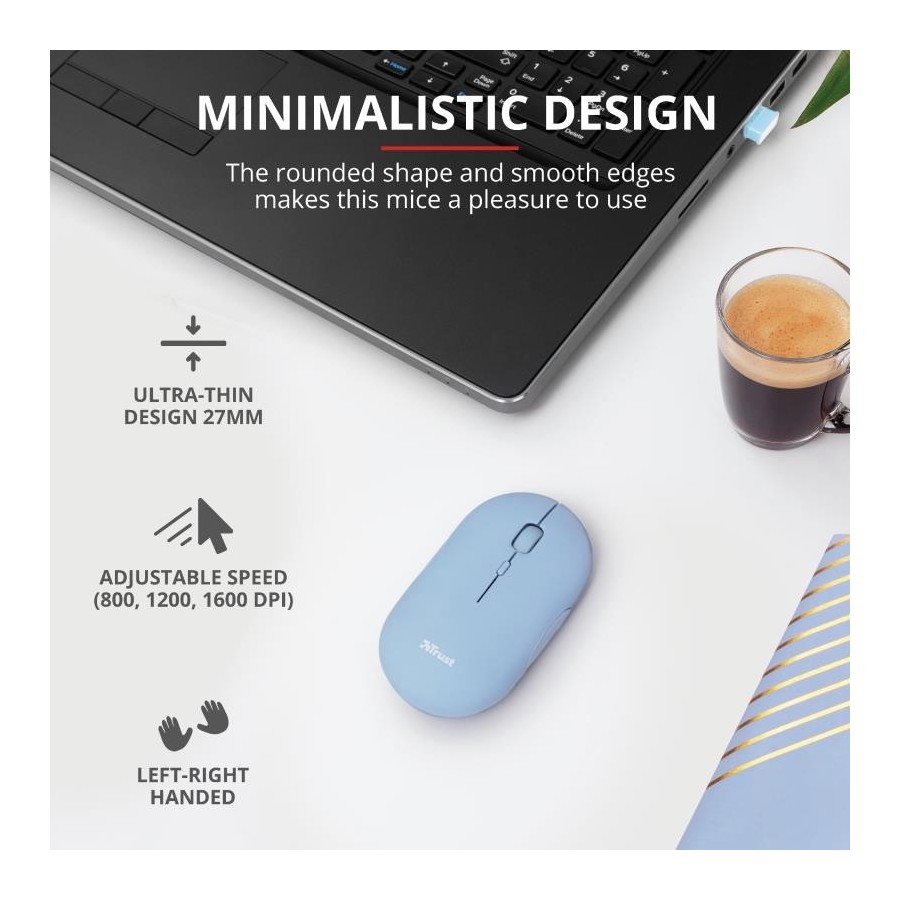 El ratón Puck de Trust está diseñado para ser la solución ideal ante cualquier exigencia del trabajo fuera de casa. Este ratón inalámbrico ultrafino es lo bastante pequeño para llevarlo encima sin por ello sacrificar la facilidad de uso. Está equipado con todas las funciones que necesita, como doble conectividad inalámbrica, botones silenciosos y batería recargable. Y es apto tanto para usuarios zurdos como diestros.