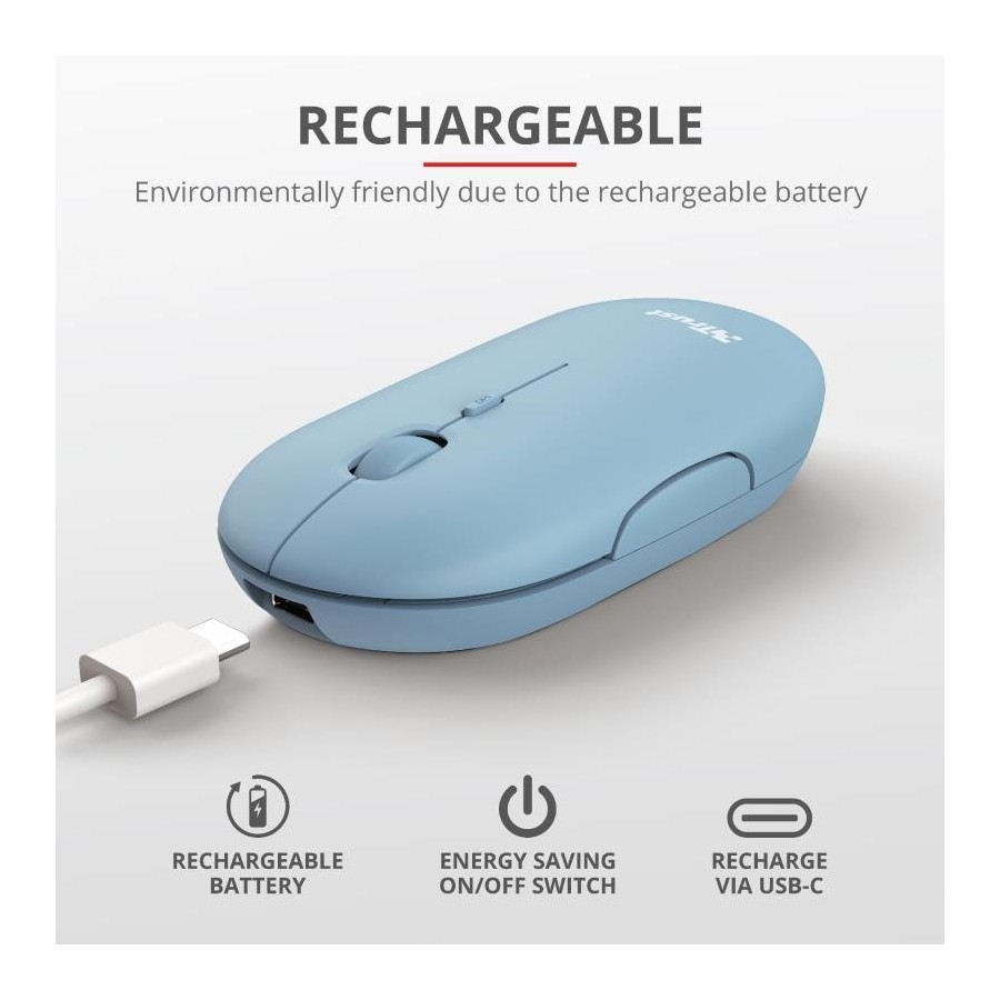 Gracias a la batería recargable, no tendrá que volver a comprar baterías desechables. Cuando el ratón se esté quedando sin batería, simplemente conéctelo con el cable USB-C incluido y listo. Ahorrará dinero y ayudará a proteger el medio ambiente.