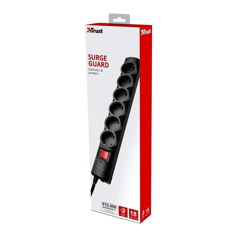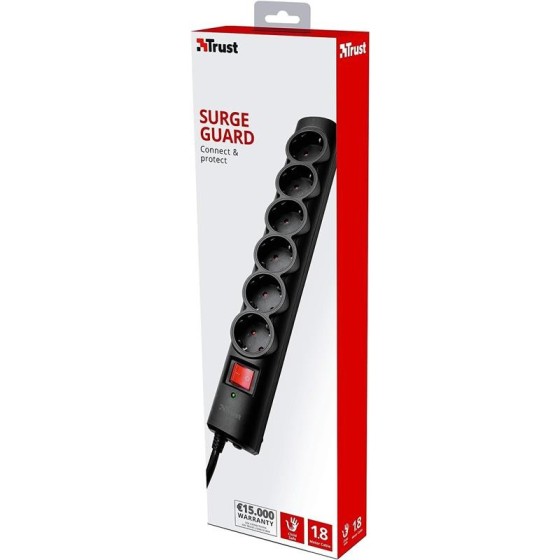 REGLETA TRUST 6 SCHUKOS INTERRUPTOR 1,8M BLACK