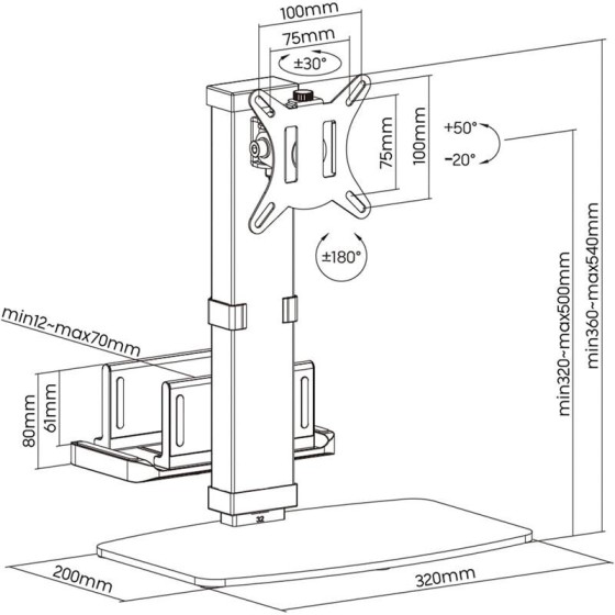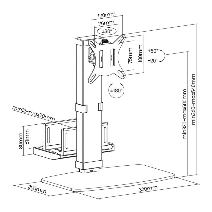SOPORTE DE MESA TV/MONITOR/MINI PC AISENS 17-32 1 BRAZO 8KG BLACK