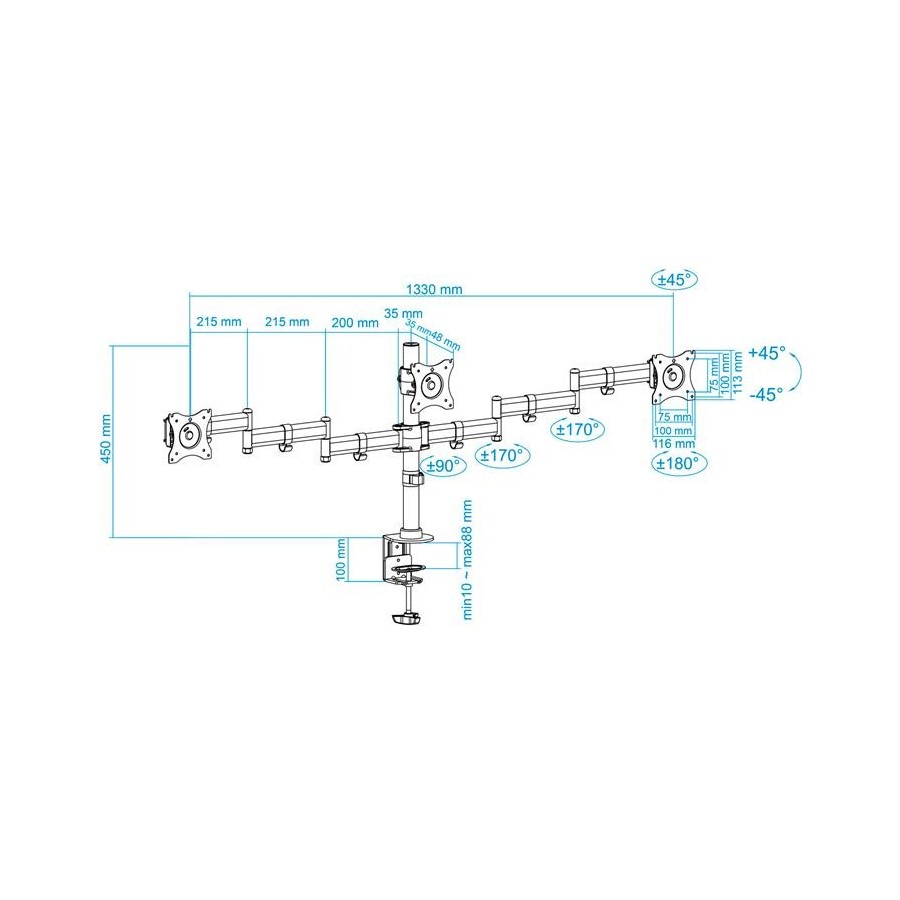 SOPORTE DE MESA TV/MONITOR TOOQ 13-27 8KG 2 BRAZOS PARA 3 PANTALLAS