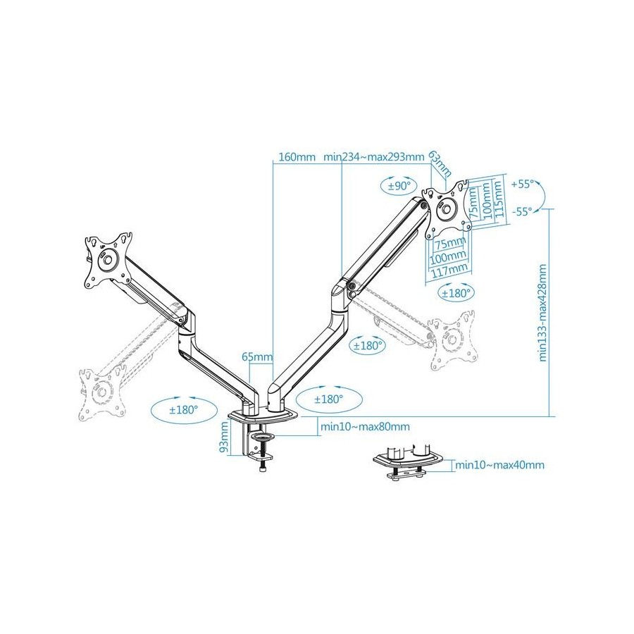 SOPORTE DE MESA TV/MONITOR TOOQ 17-32 2 BRAZOS WHITE