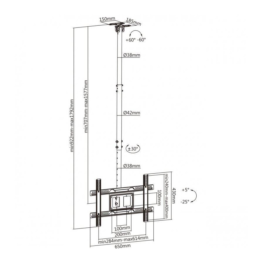 SOPORTE MONITOR AISENS TECHO 37-80 50KG INCLINABLE EXTENSIBLE BLACK