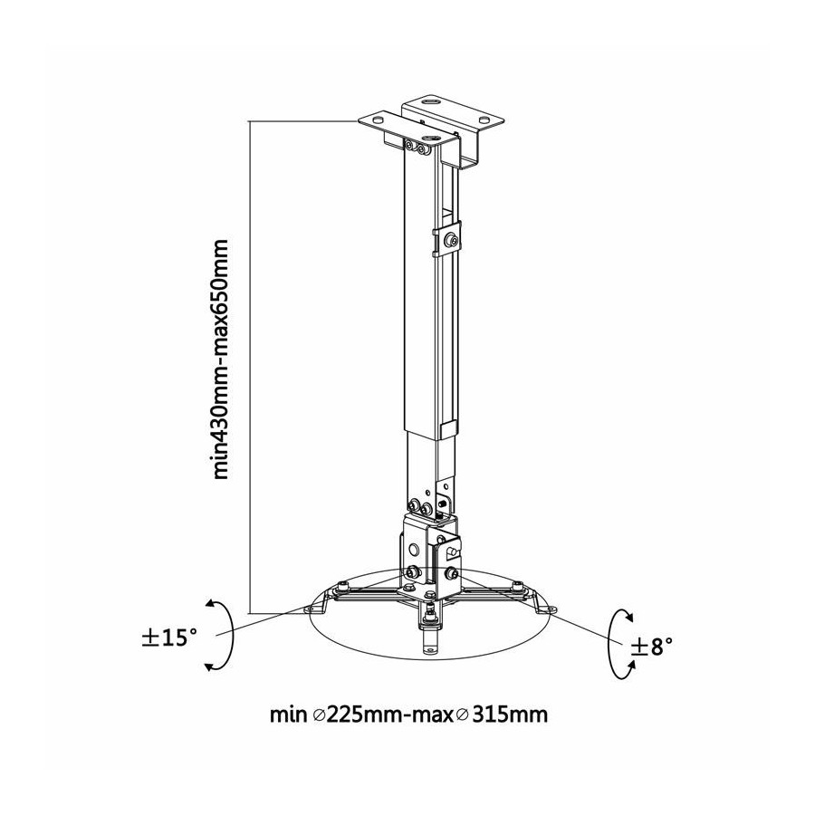 Patrón universal de montaje. Rango de instalación: de 225 a 316mm (Compatible con la mayoría de los proyectores)