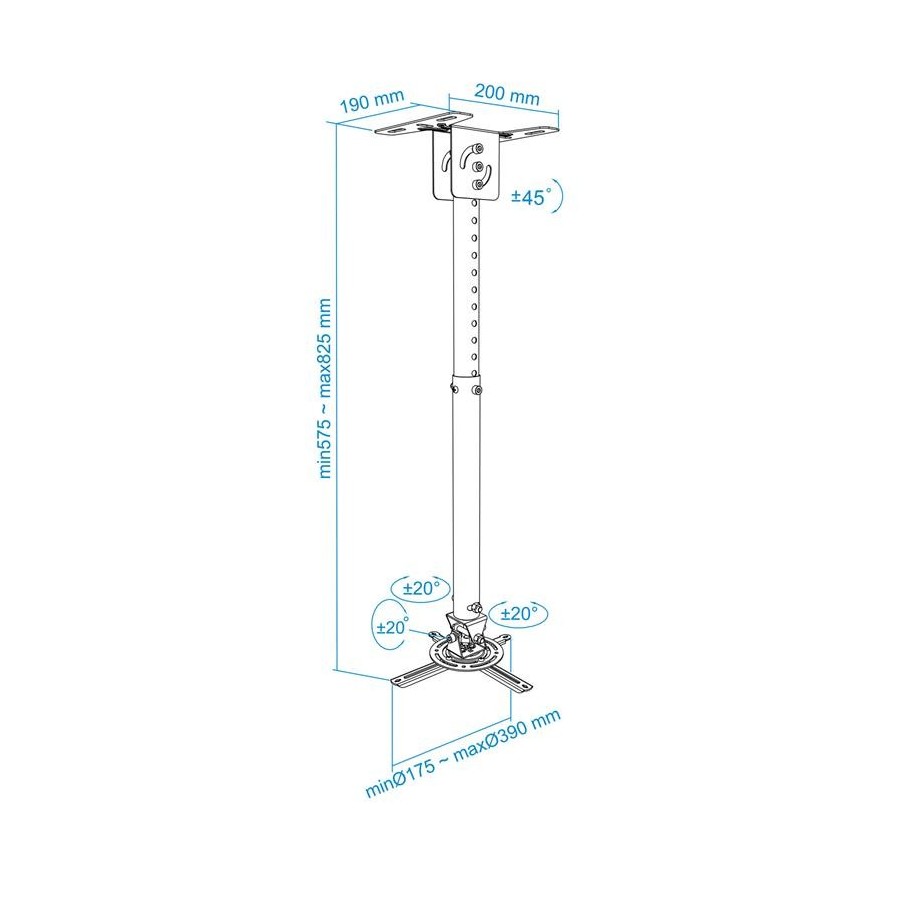 TooQ SOPORTE UNIVERSAL DE TECHO GIRATORIO 360º E INCLINABLE PARA PROYECTOR NEGRO, Techo, 20 kg, Negro, 360°, -20 - 20°, 82,5 cm