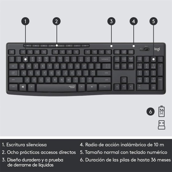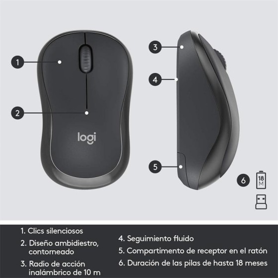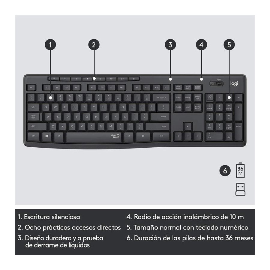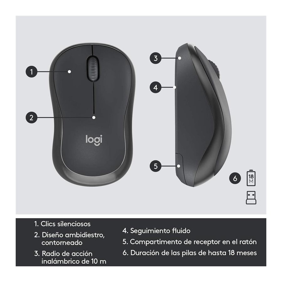 TECLADO + RATON LOGITECH MK295 WIRELESS SILENT GRAFITO
