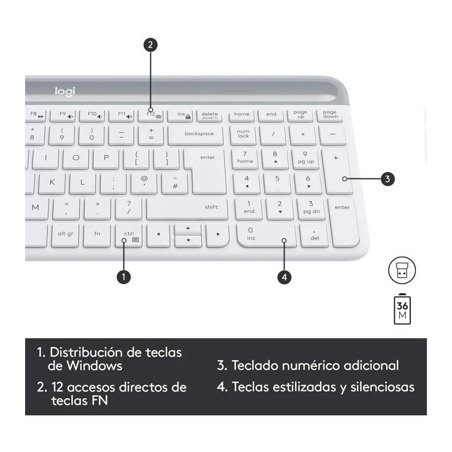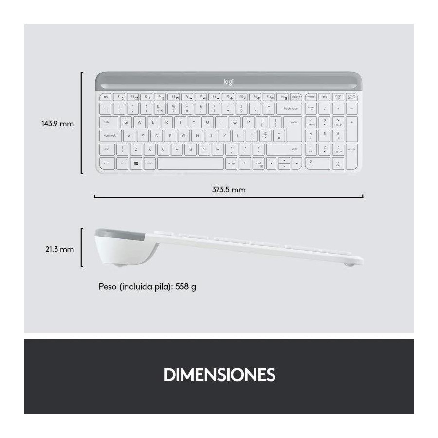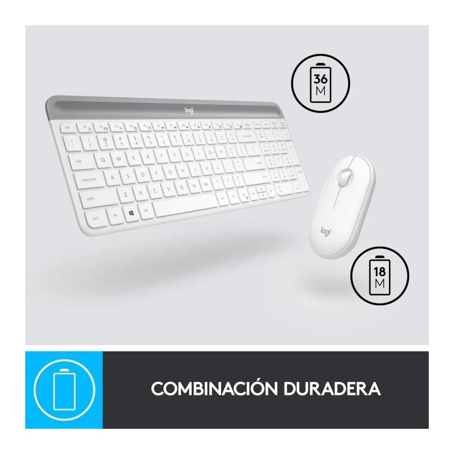 TECLADO + RATON LOGITECH MK470 SLIM WIRELESS SILENT WHITE