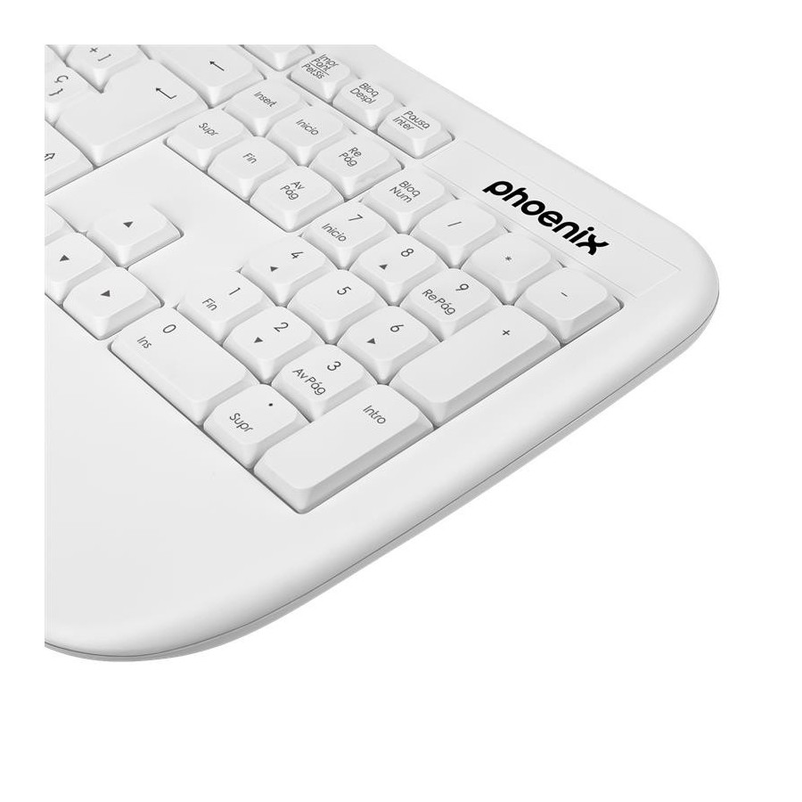 TECLADO PHOENIX K201 ERGONOMICO WIRELESS WHITE