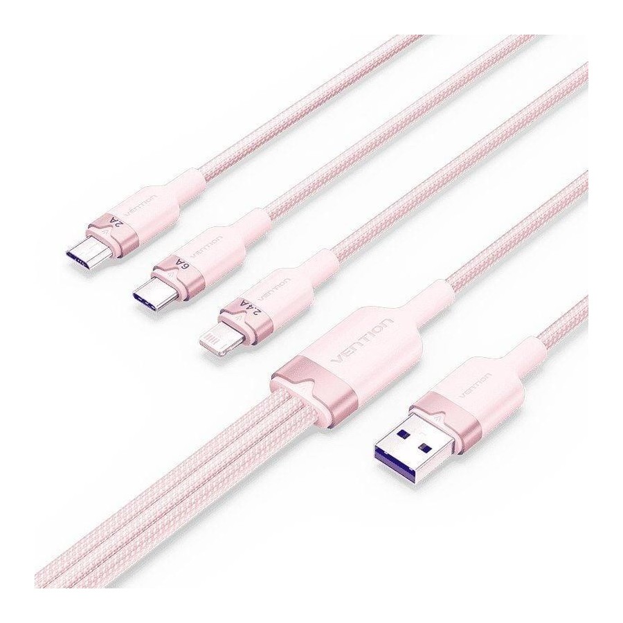 CABLE 3 EN 1 VENTION USB-A 2.0 - USB-C/LIGHTNING/MICRO-B 1.5M ALUMINIO ROSE