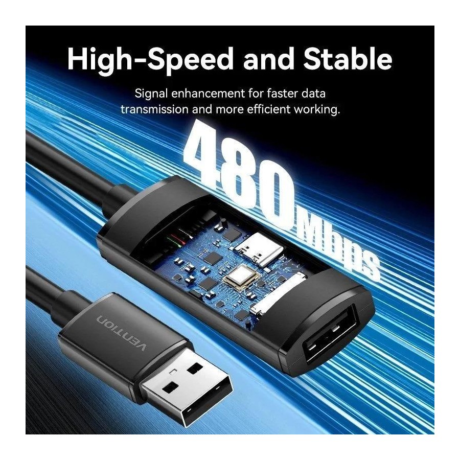 CABLE ALARGADOR USB-A VENTION AMPLIFICADO 2.0 TIPO USB-A/M - USB-A/H 5M