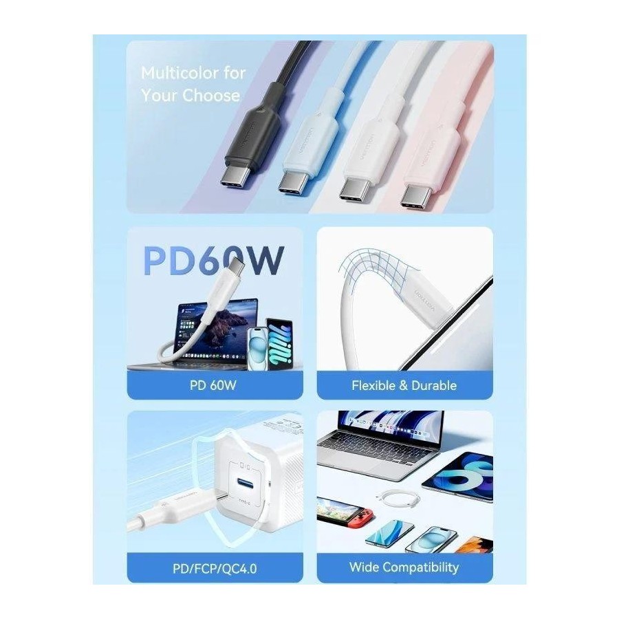 CABLE USB 2.0 VENTION TIPO USB-C/M-C/M 3A 1M BLACK
